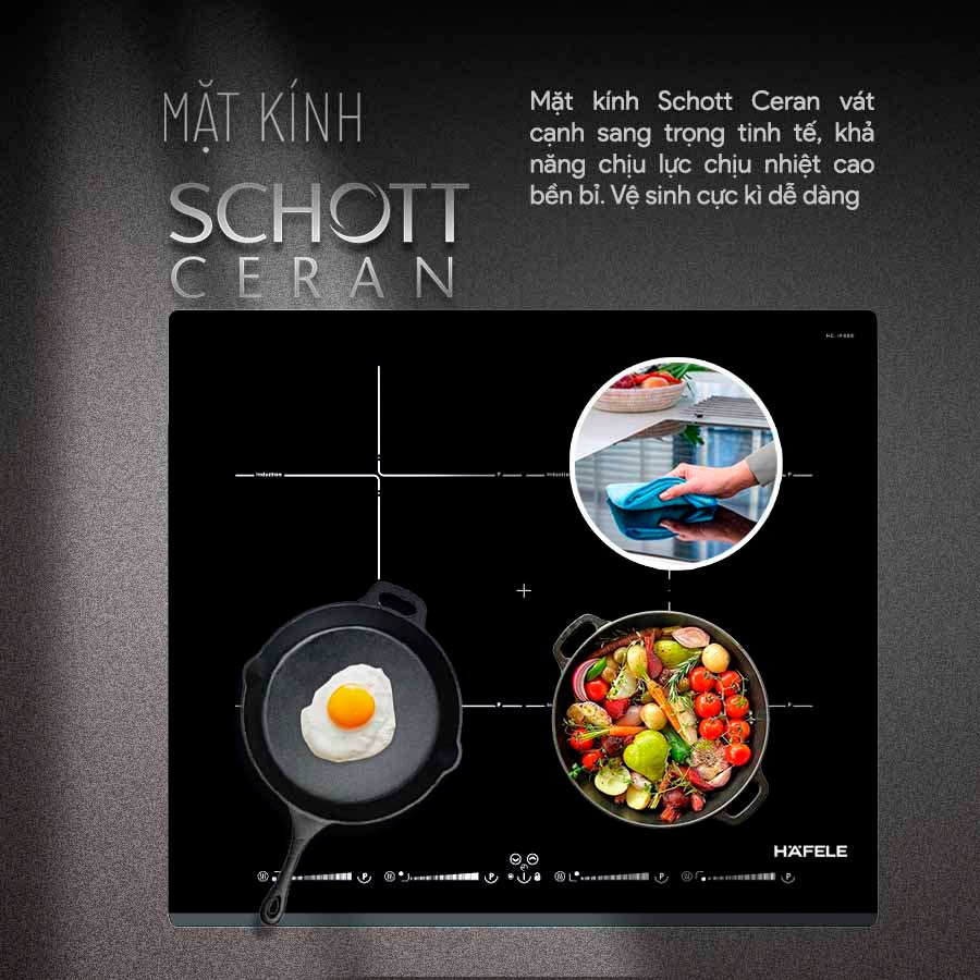 Mặt kính Schott Ceran (Đức) – chịu lực, chịu sốc nhiệt cao, chống trầy xước.