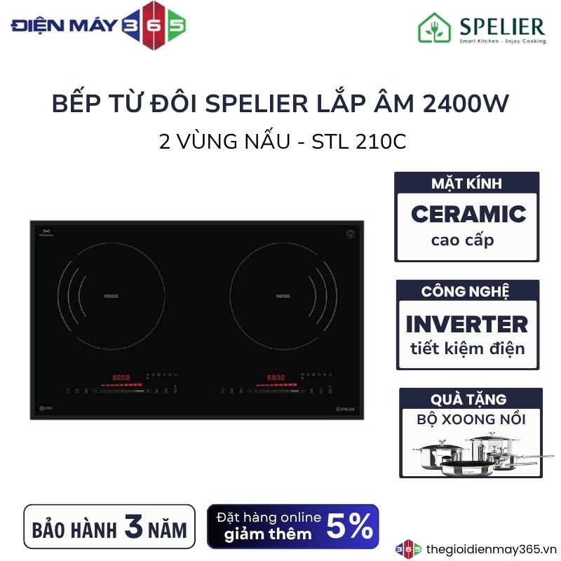 - Ngoài ra, để người dùng yên tâm nấu ăn thì bếp từ Spelier STL 210C còn trang bị các tính năng an toàn nổi bật như: Khoá trẻ em an toàn, chống tràn, tự tắt bếp, cảnh báo nhiệt dư trên vùng nấu.