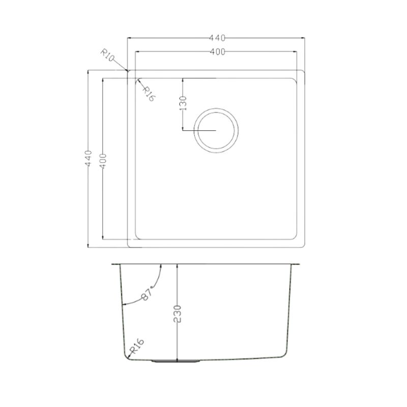 - Vệ sinh lòng chậu dễ dàng với góc lượn R16 mm.