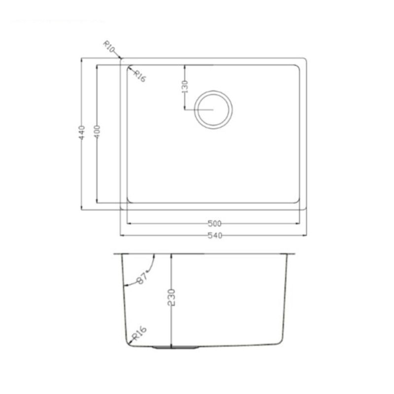 - Vệ sinh lòng chậu dễ dàng với góc lượn R16 mm.