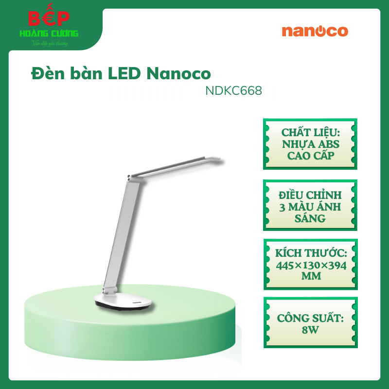 Đèn bàn Nanoco NDKC668, Công suất 8W, nhựa ABS cao cấp, Điều chỉnh 3 màu ánh sáng