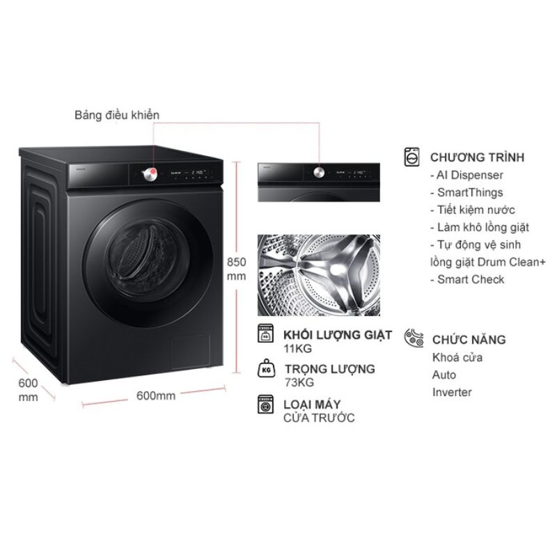Máy Giặt Samsung Inverter 11 Kg WW11CB944DGBSV cửa trước