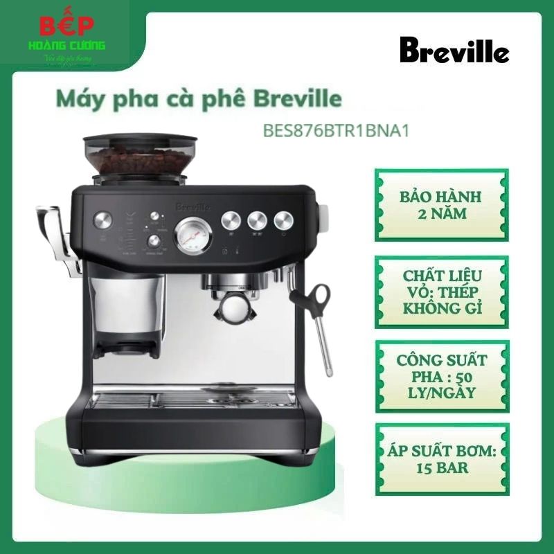 Breville – thương hiệu gia dụng cao cấp đến từ Australia, nổi tiếng với các dòng máy pha cà phê hiện đại, thiết kế tinh tế và chất lượng bền bỉ. Với BES876BSSBNA1, Breville mang đến trải nghiệm pha cà phê chuyên nghiệp ngay tại nhà.