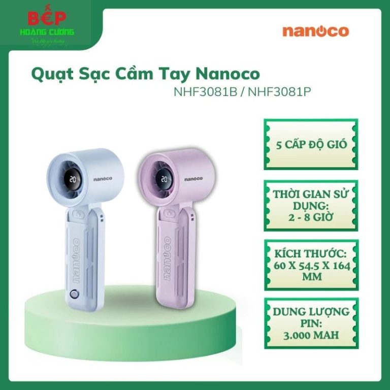 Nanoco NHF3081B Quạt Cầm Tay Mini – Pin Lithium, 5 Cấp Độ Gió – Nhỏ Gọn, Tiện Lợi Cho Mọi Hành Trình