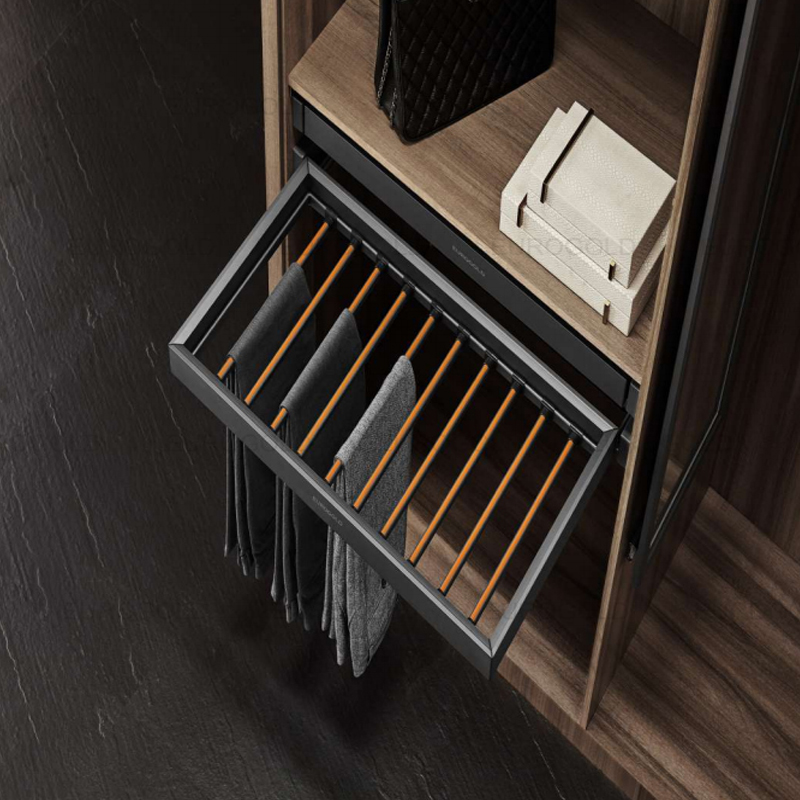 – Lắp đặt dễ dàng, hoạt động trên ray trượt rất nhẹ không bị hóc có thể kéo ra toàn phần để lấy đồ. Chủ yếu các thiết kế trên sản phẩm dùng để treo quần âu, để cavat, thắt lưng… Và hơn nữa với sản phẩm giá treo quần áo đa năng khung màu đen bạn sẽ không bao giờ sợ bị quá tải khiến ray trượt bị sụp, gãy vì độ chịu lực và tuổi thọ của sản phẩm cực cao.