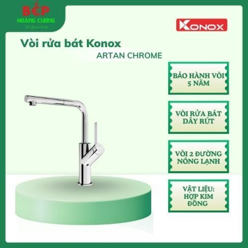 Vòi Rửa Bát Dây Rút Konox Artan Chrome – Bảo hành vòi 5 năm, Vòi rửa bát dây rút – Mạ PVD Chrome 5 Lớp